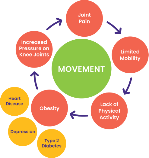 We know that joint pain can lead to decreased physical activity, weight gain, and obesity, creating increased pressure on knee joints.